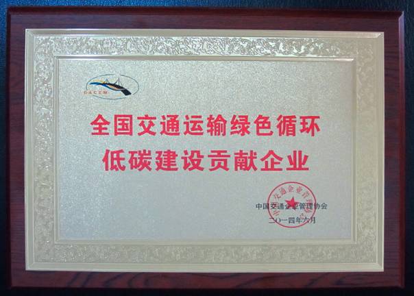全國(guó)交通運(yùn)輸綠色循環(huán)低碳建設(shè)貢獻(xiàn)單位